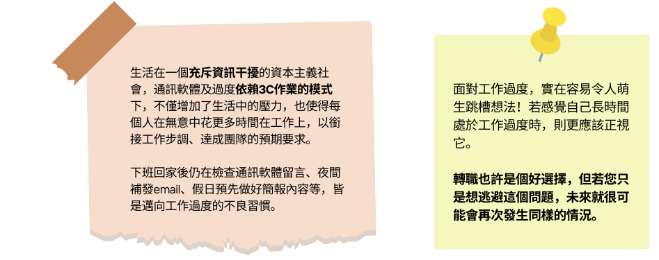 工作過度的感受並非憑空產生,大多源自於組織內部的工作文化。