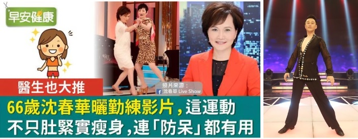 66歲資深媒體人沈春華駐顏有術,健康、神采奕奕的模樣令人稱羨。演員何篤霖曾透過跳國標瘦身成功,何篤霖甚至在3個月內瘦下10kg、肚子變得緊實,並笑稱跳國標是防失智的「防呆機制」。