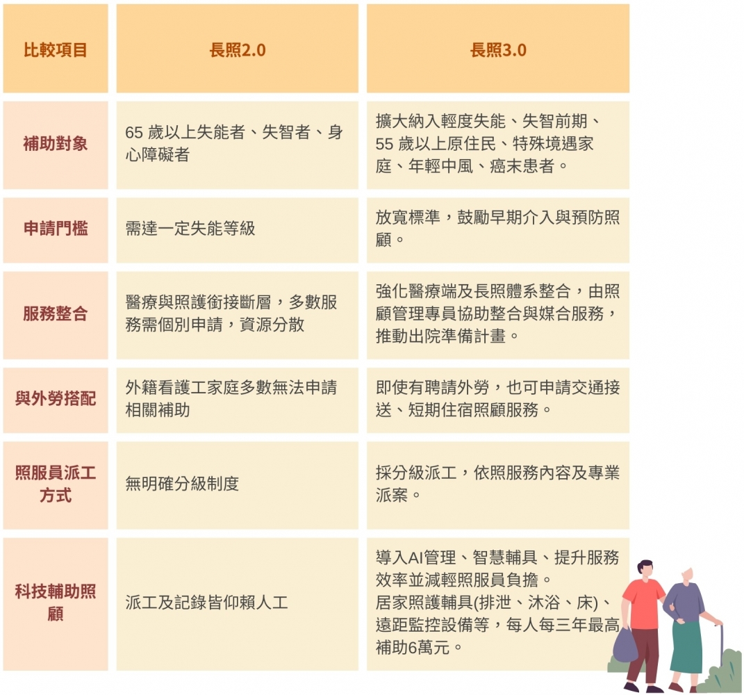 以下為2025年9月起新上路的長照3.0懶人包