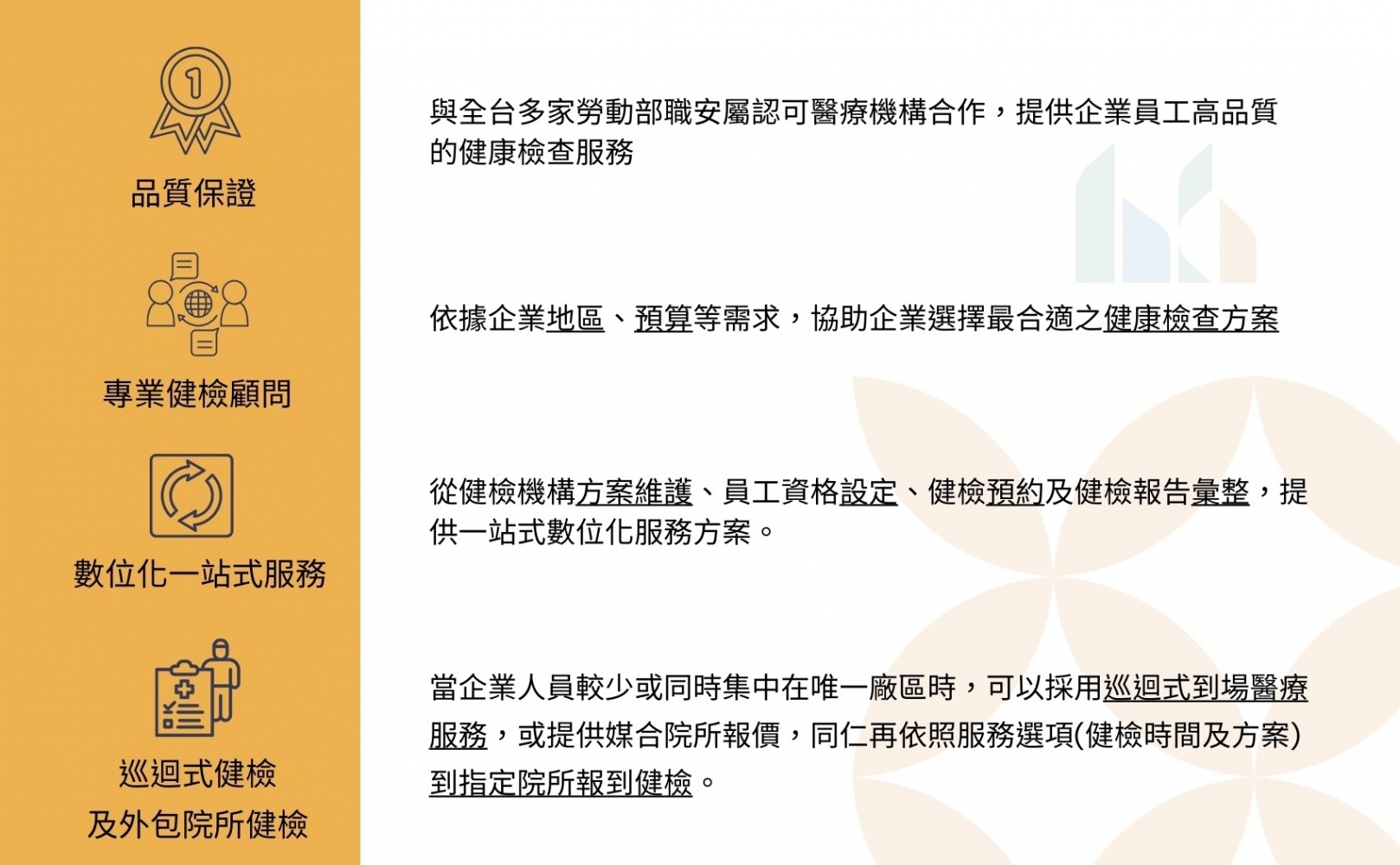 > 服務項目 > 健檢顧問服務特色